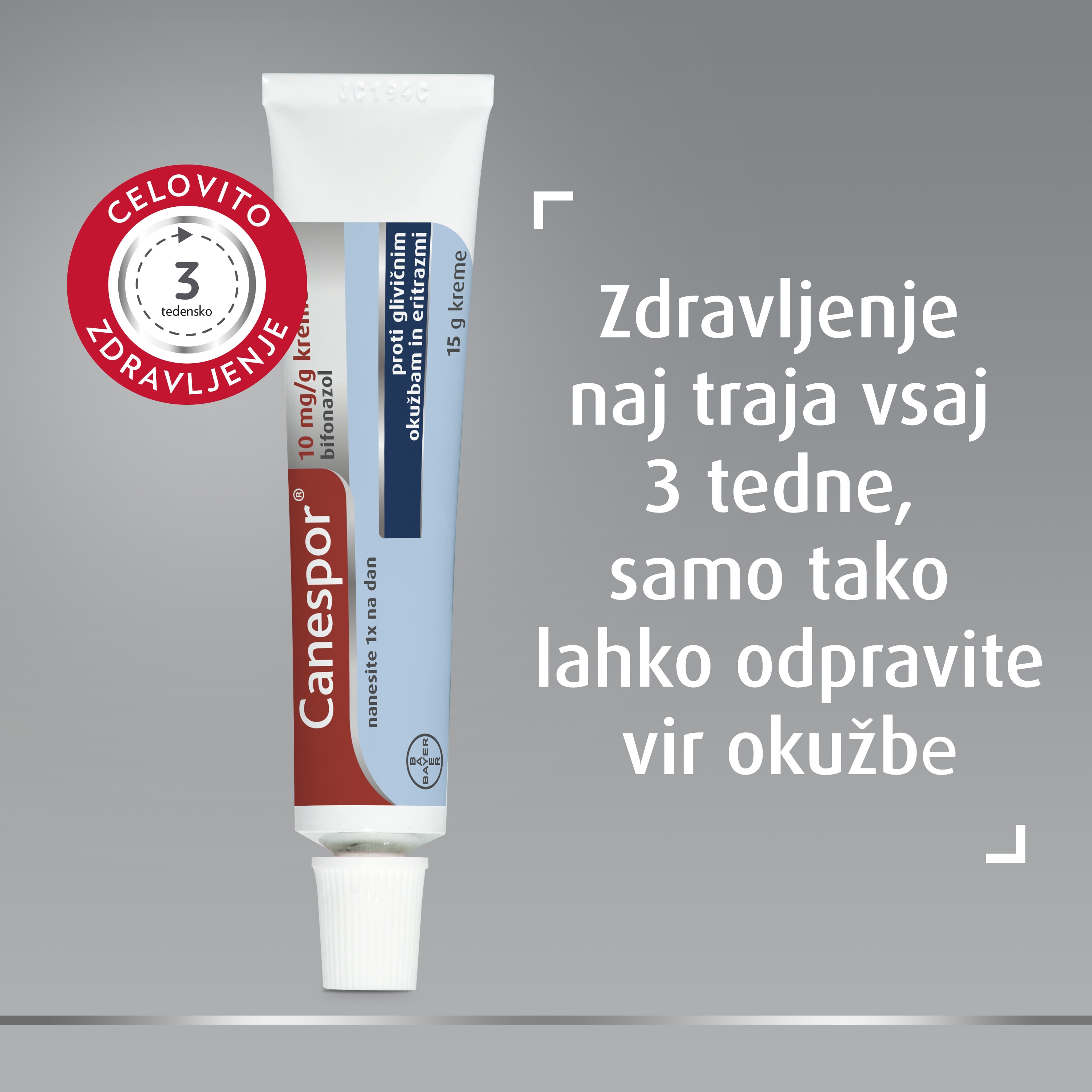 Protiglivična krema Canespor® 10mg/g krema zdravi glivično okužbo stopal in širok nabor glivičnih okužb kože, kot je lišaj ali glivična okužba dimelj. Vsebuje bifonazol.
